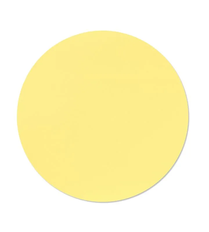 Black, round placemat made of 80% recycled leather and 20% natural rubber.