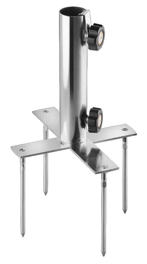 Er besteht aus galvanisch verzinktem Stahl und ist daher sehr stabil und witterungsbeständig. Er ist für Unterstöcke 25 – 38 mm Ø, für Schirme bis 300 cm Ø geeignet.