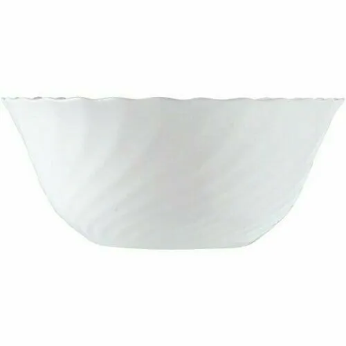 The Trianon 24 cm salad bowl by Arcoroc is made of white opal glass, resistant to shocks and thermal changes. Ideal for professional horeca use, it is stackable and suitable for industrial washing.